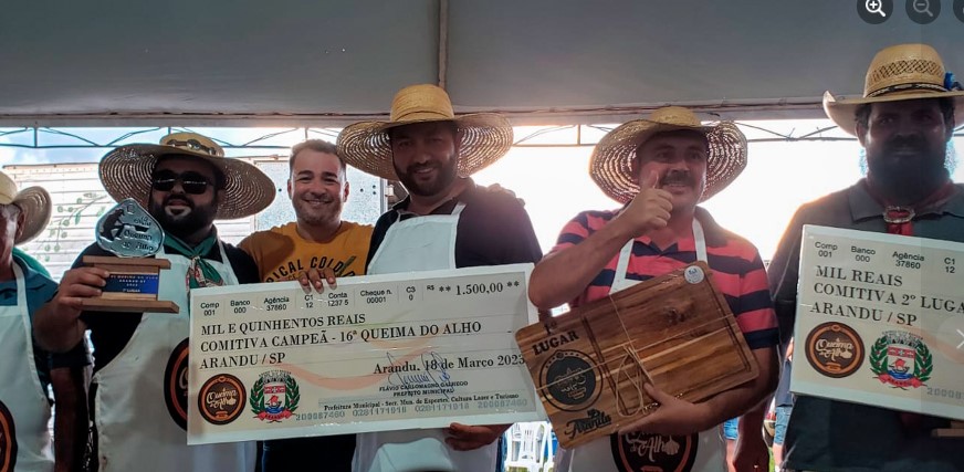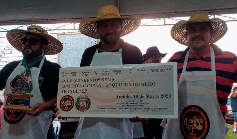 A Prefeitura de Arandu, através da Secretaria de Esportes, Cultura, Lazer e Turismo, realizou no sábado, dia 18 de março, a 16ª edição da tradicional Queima do Alho. O evento aconteceu no Recinto de exposições Atílio Silvestre, e teve toda a sua renda destinada a entidade: “Patudos de Arandu”. A festa fez parte das comemorações dos 58 anos do município.